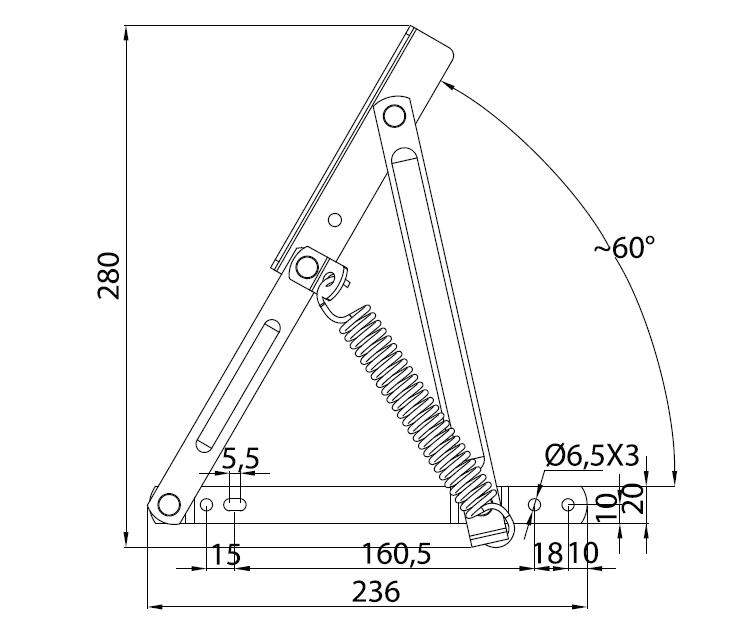 Kanepe köşe uzantılarının ve puflarının yay yardımı ile 60 derece açılmasını sağlar. İskeletin iç kısmının sandık amaçlı kullanılmasını sağlar.